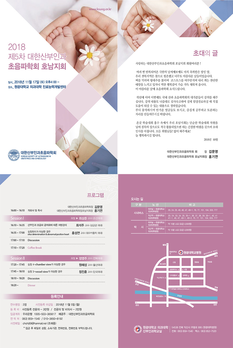 학술행사 제5차 대한산부인과초음파학회 호남지회 연수강좌 일자 : 2018.11.17 장소 : 원광대학교 의과대학 진료능력개발센터 제5차 대한산부인과초음파학회 호남지회 연수강좌 2018.11.17 원광대학교 의과대학 진료능력개발센터 호남지회 리플렛1.jpg (다운로드 : 21회) 목록