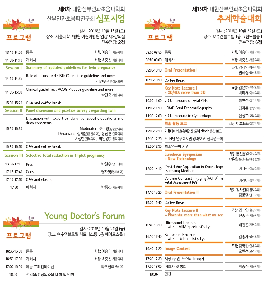 학술행사 연혁 제3차 대한산부인과초음파학회 호남지회 연수강좌 일자 : 2016.11.05 장소 : 조선대학교병원 의성관 5층 김동국홀 http://old.ksuog.or.kr/workshop/201609/ 목록