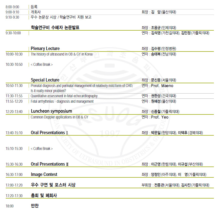 학술행사 연혁 제13차 대한산부인과초음파학회 추계학술대회 일자 : 2010.10.30 장소 : 부산 노보텔 앰버서더 호텔 http://old.ksuog.or.kr/workshop/201010/ 목록