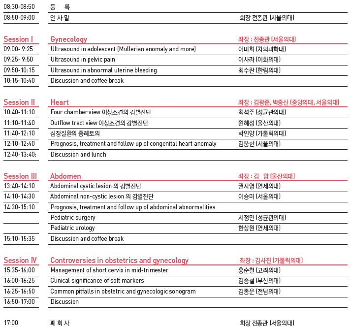 학술행사 연혁 제14차 대한산부인과초음파학회 개원의를 위한 연수강좌 일자 : 2012.04.09 장소 : 서울대학교 어린이병원 임상 1-2 강의실 http://old.ksuog.or.kr/workshop/201201/ 목록