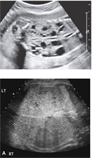②Polycystic kidney disease (PKD): autosomal recessive와 dominant 타입이 있으며, 이 두 타입은 초음파로는 감별이 어렵습니다. 매우 작은 cysts가 kidney 전체에 있으며, stillborn or neonatal death의 나쁜 예후를 가지고 있습니다.
