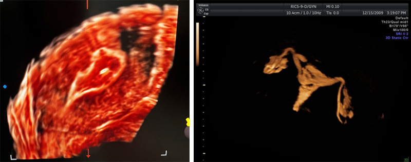 난임의 진단은 나이에 따라서 조금씩 다르지만 약 6개월에서 1년정도 부부관계를 하였는데 임신에 성공하지 못하는 경우입니다. 난임이 진단되면 난임의 원인을 밝히기 위한 기본검사를 시행합니다. 난임검사는 배란문제를 파악하기 위한 호르몬 검사, 나팔관 개통여부를 알아보는 검사, 자궁 원인을 알아보기 위한 초음파 검사 및 정액검사로 이루어져 있으며 그중 자궁원인 및 나팔관원인 파악에 초음파가 매우 중요한 역할을 합니다. 첫 내원 시 자궁근종, 선근증 및 자궁기형을 면밀하게 살피고, 난소의 종양여부 및 난관수종의 여부도 반드시 확인하여야 합니다. 이러한 과정에서 3D 초음파도 매우 자주 사용되고 있습니다. 특히 3D 초음파의 자궁기형 진단의 정확도는 매우 높습니다. 나팔관개통여부를 확인하는 방법은 엑스레이를 이용하는 방법과 초음파를 이용하는 방법이 있는데, 최근에는 비교적 외래에서 손쉽게 시행할 수 있는 초음파자궁난관조영술을 더 많이 시행하고 있습니다.